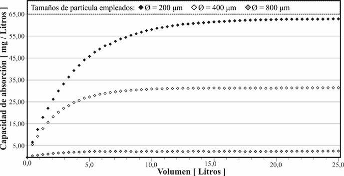 Mediante el uso de esta ecuación adecuada a las condiciones experimentales de cada una de las fracciones evaluadas, se calculó las propiedades de adsorción específicas según el tamaño de partícula planteado.