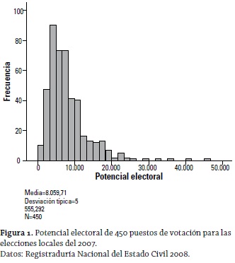 Sin embargo, este proyecto debió enfrentar varios problemas. En primer lugar, no se cuenta con una cartografía electoral de referencia, es decir una que indique dónde están los puestos de votación y la población que vota en los mismos, por lo que dicha cartografía debe ser, en parte, construida. Aunque Bogotá, en su área urbana y rural, contó con 467 puestos de votación en las elecciones locales del 2007, la cartografía electoral más detallada los agrupa en las 20 localidades de la ciudad (Registraduría Nacional del Estado Civil 2008), donde la más pequeña de las localidades (La Candelaria) cuenta con aproximadamente 95.000 habitantes.
