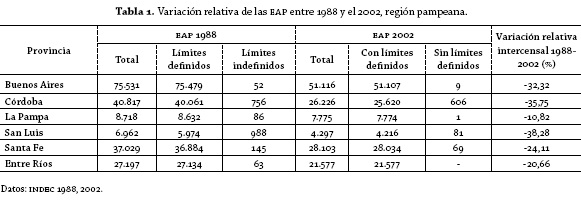 Procurando un acercamiento al objetivo propuesto, metodológicamente ha sido central la lectura de literatura especializada, la revisión de documentos históricos, estadísticos, fotográficos y bibliográficos, así como la sistematización y análisis de datos provenientes de los censos nacionales de población de 1991 y del 2001 y de los censos nacionales agropecuarios de 1988 y del 2002, relevados por el Instituto Nacional de Estadística y Censos —en adelante, INDEC—, y también la observación directa.