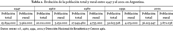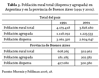 En Argentina, la definición estadística de ‘lo rural’, tal como establecen Castro y Reboratti (2008), fue acuñada en Francia en el siglo XIX, en ella el criterio que distingue lo rural de lo urbano es la cantidad de habitantes. Mientras que en Francia este concepto ha sido revisado dos veces, en Argentina se continúa utilizando sin modificaciones. Así, según la clasificación censal que establece el INDEC, son urbanas las aglomeraciones que posean 2.000 habitantes o más. Por otra parte, aplica la categoría de población rural agrupada para las localidades que presentan menos de 2.000 habitantes, mientras que al resto de la población rural la define como dispersa. Esta distinción podría ser considerada como una definición "restringida de lo rural" (Banco Mundial 2007, 20).