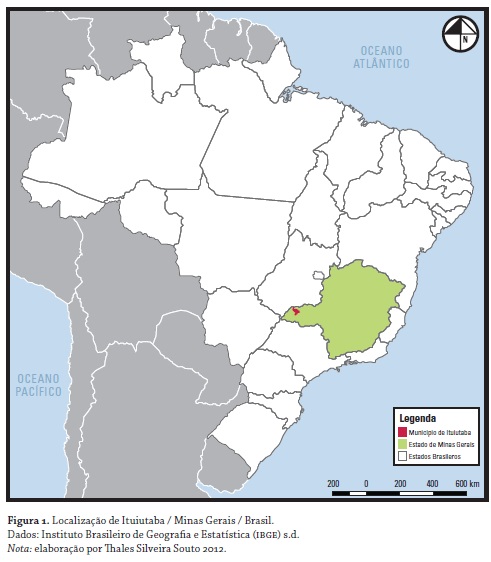 Para melhor compreensão e apresentação da área pesquisada, destaca-se que o município de Ituiutaba localiza-se na região Sudeste do Brasil (de acordo com o Instituto Brasileiro de Geografia e Estatística — doravante IBGE, o território brasileiro é dividido em 5 regiões, que são: Norte, Nordeste, Centro-Oeste, Sul e Sudeste). Em cada região existem as unidades federativas, que são os estados (26 estados mais o Distrito Federal), nestes há uma subdivisão entre Mesorregiões Geográficas — doravante MSG1, sendo que no estado de Minas Gerais, há um total de 12. O município de Ituiutaba é pertencente à Mesorregião do Triângulo Mineiro / Alto Paranaíba (figura 2), localizada a Oeste de Minas Gerais. Em cada MSG existe a divisão por Microrregiões Geográficas — doravante MRG2.