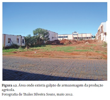 Outro fator notório no município é a demolição dos antigos galpões, reflexo da atual forma de uso e ocupação do espaço urbano, a especulação imobiliária, pois estes prédios localizam-se na região central. Esses eram utilizados para o beneficiamento e armazenamento de arroz, que pode ser visualizado na figura 12, sendo que em suas estruturas mostram a arquitetura de determinada época.