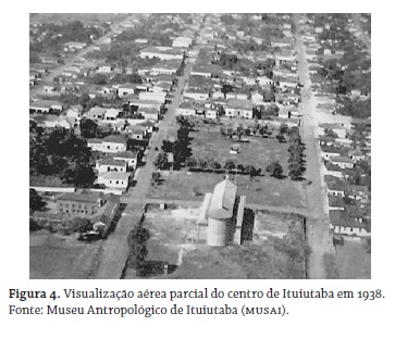 Por meio da figura 4 datada do ano de 1938, observa-se a principal área do centro urbano. Nesta figura é possível visualizar algumas construções, como a catedral São José, o Colégio Santa Tereza, alguns armazéns, a praça da prefeitura ao fundo e algumas residências, dentre outros.