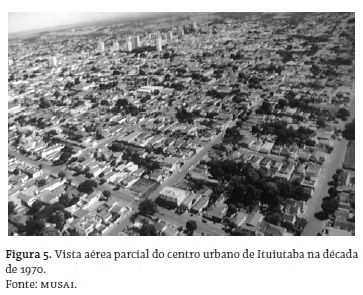 Como forma de avaliar e comparar o desenvolvimento obtido por meio da produção agrícola no município de Ituiutaba, principalmente devido à orizicultura, a figura 5 mostra parte do centro urbano da cidade, com ocupação intensa de todos os lotes e grande número de prédios verticais ao fundo.