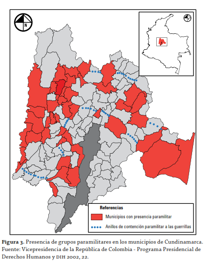 Observatorio DD.HH. 2005. Dinámica reciente de la confrontación armada en Cundinamarca. Bogotá: Presidencia de la República de Colombia. http://historico.derechoshumanos.gov.co/observatorio/publicaciones/documents/2010/estu_regionales/cundinamarca05.pdf. [ Links ]
