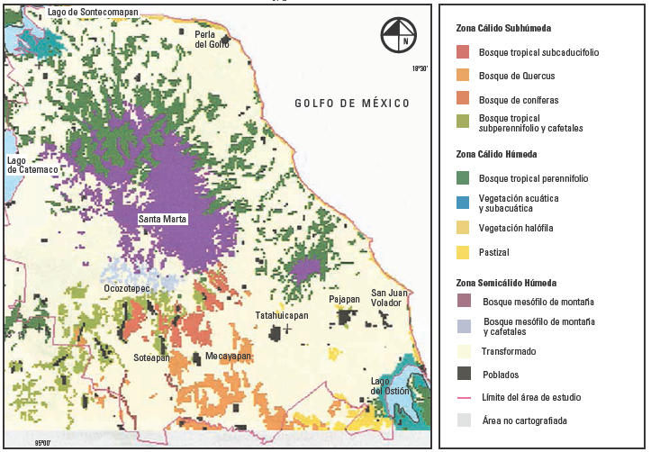 En todo el territorio de Los Tuxtlas y la Sierra de Santa Marta, una gran diversidad de ecosistemas y tipos de vegetación, así como un rango altitudinal que va desde el nivel del mar hasta los 1.550 m.s.n.m. del volcán Santa Marta, le confieren a la región un rango importante desde el punto de vista de la biodiversidad. Sin embargo, durante las últimas décadas ha prevalecido un proceso denominado “subdesarrollo sostenido” (Chevalier y Buckles 1995, 126). Esta noción hace referencia a las políticas económicas gubernamentales que han acelerado el subdesarrollo, básicamente mediante el apoyo a programas de desarrollo ganadero y a programas asistencialistas que en gran medida dependen de insumos externos.