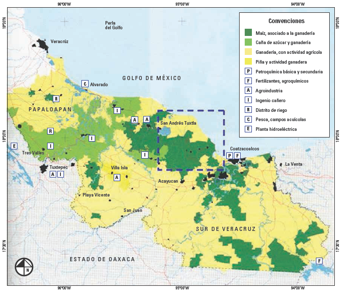 Además, en los últimos años se han cerrado las tres válvulas de escape más importantes, las cuales permitían cubrir el déficit de tierras y alimentos en Los Tuxtlas y la Sierra de Santa Marta. Estas eran: la migración a las ciudades del corredor industrial petroquímico Acayucan-Jáltipan-Minatitlán-Coatzacoalcos, en el Sur de Veracruz (figura 4); el cultivo y comercialización del café; y el uso comunal de tierras ejidales.