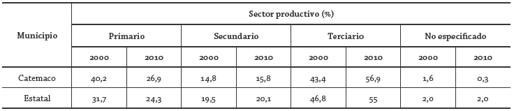 Tabla 2 Porcentaje de la Población Económicamente Activa (PEA) por sector productivo (2000)