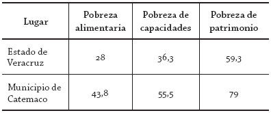 Tabla 4 Índice de pobreza (PNUD 2005) en el estado de Veracruz y el municipio de Catemaco
