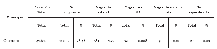 Tabla 5 Tipos de migrantes en el municipio de Catemaco (2000)