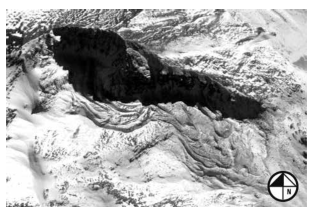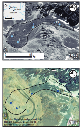 Figura 1 Glaciar rocoso Cerro Negro (33o8’35” S - 70o14’56” W) en los años 1955 y 2009.