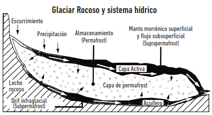 En un escenario de Cambio Climático Global y creciente presión minera, los glaciares rocosos se consideran recursos hídricos estratégicos que exigen un marco normativo regulatorio, pues sus respuestas conservadoras al aumento de la temperatura externa están relacionadas con la cobertura superficial escombros. Los pocos trabajos que han intentado comprender la significancia hidrológica de los glaciares rocosos para el semiárido han coincidido en que existe una superficie extensa cubierta por este tipo de geoformas, que garantizan escorrentías en periodos cálidos y secos.