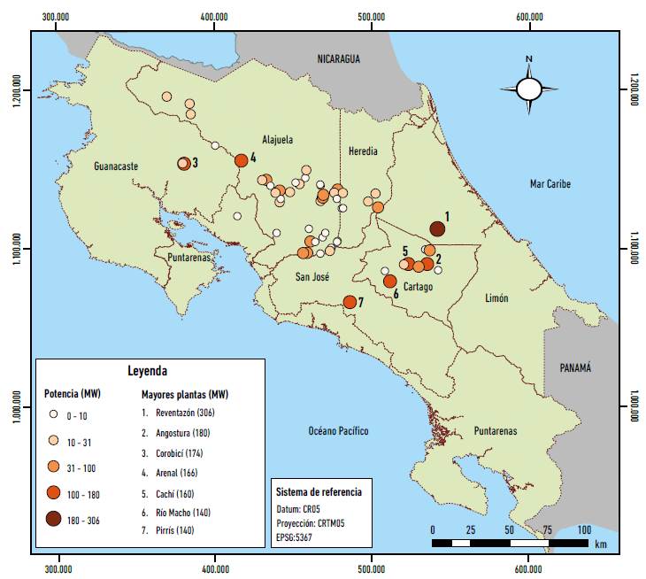 Con la creación del ICE, dos cambios importantes pueden ser notados: uno tiene que ver con el tamaño de los plantas hidroeléctricas que se construyen en esta época, por lo general de grandes dimensiones (para la escala costarricense): Río Macho (construida en 1963, con 140 megavatios -en adelante, MW- de potencia), Cachí (1966, con 160 MW), Arenal (1979, con 166 MW) y Corobicí (1982, con 174 MW) (ICE s.f.). Junto con estas represas "históricas", en las últimas décadas se han incorporado otras al sistema eléctrico nacional, tales como Angostura (2000, con 174 MW), Pirrís (2011, con 140 MW) y Reventazón (2016, con 306 MW); esta última es la más potente en toda la región centroamericana. A pesar de los cambios que se han dado en las últimas décadas (por ejemplo, incursión de proyectos privados y diversificación de la matriz eléctrica a otras fuentes, como geotérmica y eólica), las grandes represas del ICE siguen representando, hasta la fecha, el grueso de la generación eléctrica nacional.