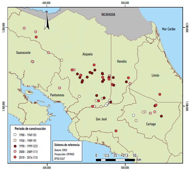 Ahora bien, a pesar de que la liberalización del sector eléctrico en Costa Rica se puso en marcha de forma gradual y parcial, el hecho es que las reformas de los años noventa modificaron el mapa hidroeléctrico de manera notable. La manifestación más clara de esto es que se da una proliferación de decenas de plantas hidroeléctricas en diferentes regiones del país en un corto periodo de tiempo, en su mayoría de pequeña y mediana capacidad. A partir de un levantamiento hecho por los autores se puede observar que, del total de sesenta plantas hidroeléctricas en operación al 2016, únicamente existían catorce antes de 1990, todas estas pertenecientes a instituciones públicas. Entre 1990 y 1999, se incorporan al sistema eléctrico nacional veintidós plantas nuevas, un boom nunca antes visto en la historia del país. En la década siguiente (2000-2009) disminuye el número de plantas nuevas a once y, posteriormente, entre 2010 y 2016, vuelve a aumentar, con trece proyectos más.