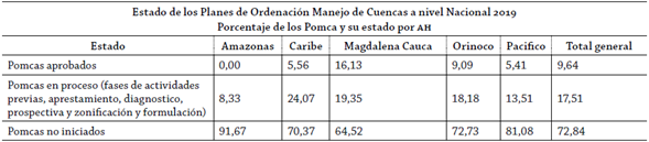 Figura. 9 Estado de los Planes de Ordenación y Manejo de Cuencas (Pomcas) en el AHMC, 2019.