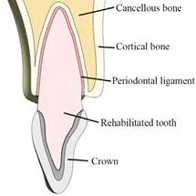 Figure 1 Image of the rehabilitation showing the proportions of periodontal ligament, cortical bone, cancellous bone, and crown