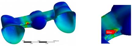 Sin embargo, según Trinschert et al(18) en estudios con modelos in vitro, las prótesis metal-cerámicas son la que mejores resultados presentan, en parte por la capacidad flexural del metal, que absorbe parte de los esfuerzos y los redistribuye, posterior a una carga cíclica. En este estudio, el comportamiento del modelo metal-cerámico, en el que se generó un mayor factor de seguridad en carga dinámica para la estructura metálica (11,8 a 200 N), se explica por la distribución en la geometría en el diseño de los conectores de este modelo, diferente al conector de las cerámicas, lo que generó que en los modelos cerámicos se presentara una concentración de esfuerzos en el conector hacia gingival, creando un mayor riesgo, contrario a las metal-cerámicas, en las que dicha concentración se dio más en toda la estructura del conector, estableciendo una mejor distribución de los esfuerzos. A pesar de ser metodologías diferentes, nuestro estudio concuerda con las conclusiones derivadas del estudio de Trinschert et al.