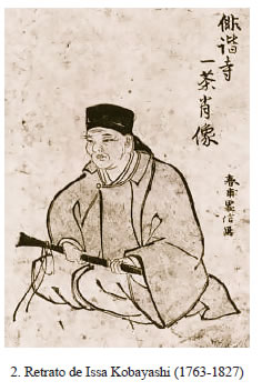 17 ''Si repasamos los datos con los que contamos sobre la vida de Issa, veremos como no hay en él un asomarse a lo popular desde lo culto, sino un puro expresarse desde lo popular mismo, como si el referente académico estuviera completamente ausente de su escritura y la disposición de sus haikús no contara más que con su propia palabra de hombre humilde, sin el ejercicio académico que pudieron tener otros poetas del haikú como Bashô y su discípulo Kikaku, de formación samuráis, Onitsura, quien elevó a escuela su propia concepción del haikú, o Buson, quien de manera sofisticada logró integrar caligrafía, pintura y poesía'' (Cuartas, 2005: 122).