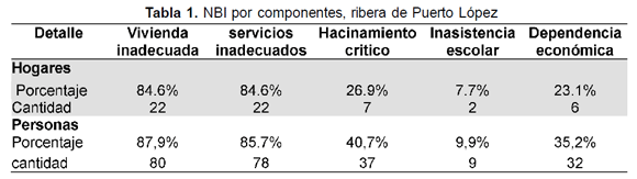 Así las cosas, las NBI más visibles en la zona son vivienda y servicios, las cuales persisten en el 85 % de los hogares como se presenta la tabla 1.