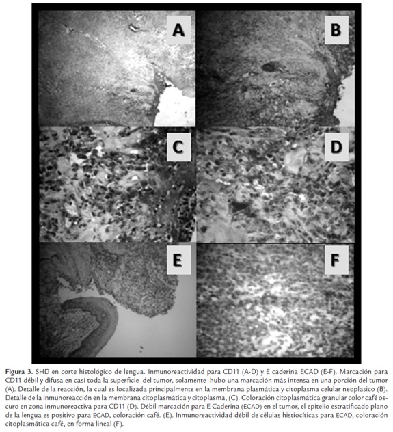 La inmunoreactividad del SHD del paciente en estudio para los antígenos CD11 y para las citoqueratinas es ilustrado en la Figura 3.