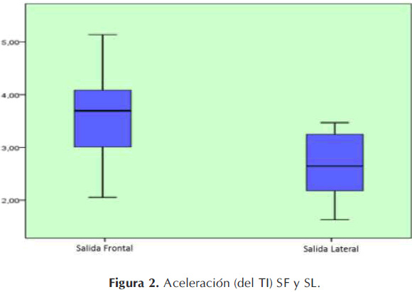 En la figura 2, se observa que la aceleración total promedio (del TI), presenta una diferencia significativa a favor de la SF sobre la SL.