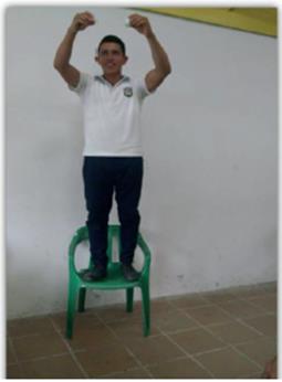 En la figura 8 se observa a un estudiante realizando la práctica, posterior a la discusión de resultados, los estudiantes afirmaron que el pitillo sale disparado con una velocidad inicial y, como la botella está en dirección vertical, el pitillo se mueve verticalmente hacia arriba, la velocidad del pitillo va disminuyendo a medida que asciende, hasta que se hace cero en la parte más alta de su trayectoria.