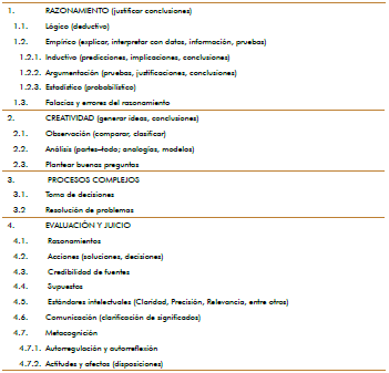 Tabla 2 Taxonomía de síntesis de destrezas de alto nivel del pensamiento crítico