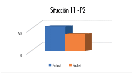 1. La situación 11-P2, primera de la dimensión argumentación, pretende determinar si el estudiante reconoce la posibilidad de que el país pueda tener una buena economía, aun si el Gobierno no está haciendo un buen trabajo. De acuerdo con los resultados presentados, no hubo cambios significativos en las respuestas de los estudiantes antes y después de la intervención didáctica, lo que demuestra cierta dificultad para escoger una opción que permita elaborar un argumento sólido frente al enunciado de referencia.