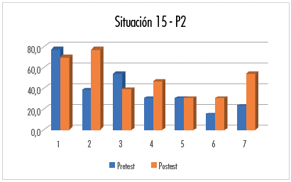 La situación 14 P-2 tiene por objeto determinar si el estudiante puede reconocer una falacia. La situación planteada se enfoca en analizar la aceptación de un número mayor de inmigrantes por parte de un país y la posibilidad de aumentar las cuotas a todos los países (Figura 4). Los resultados de esta cuestión son muy bajos tanto en el pretest como en el postest. Existe una dificultad en los estudiantes de reconocer una analogía de la falacia presentada, pues el aumento de la cuota para varios países no significa necesariamente un aumento para los demás. Esta situación ratifica el énfasis que se le brinda a la argumentación desde la NdCyT, concretamente en la formación de ciudadanos bien informados que evalúen las teorías conspirativas o las noticias falsas. Así, es posible reconocer razones, fuentes, evidencias y contraargumentos.