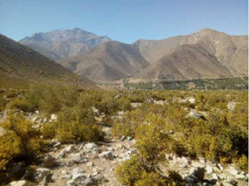 Figura 4 Población de plantas de colliguay en la planicie de la quebrada de Colli-guay, sector secano a la escuela básica en la comuna de Monte Patria, provincia del Limarí, Región de Coquimbo, Chile.