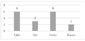 Según la figura 5, los estudiantes de primero y segundo básico en su totalidad reconocieron el tallo y el fruto del vegetal; solo algunos identificaron la flor que estaba seca en unas plantas y tres las raíces, considerando que las plantas según el testimonio entregado por los estudiantes en la tabla 6. Los alumnos relataron que las hojas del colliguay eran de color amarillento, ásperas, el tronco café. En las plantas seleccionadas había muchas ramas secas, lo que evidencia que esta propuesta educativa permite lograr en los estudiantes habilidades y actitudes para mejorar sus aprendizajes en la asignatura de ciencias naturales.