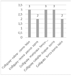 Finalmente, los estudiantes de quinto y sexto año trabajaron las cadenas alimenticias. Luego de reconocer el área donde se encontraba la población de colliguay, encontraron cinco ejemplos donde se visualiza el desarrollo de una cadena alimenticia. Uno de ellos fue la relación entre el colliguay, tenca, peuco y zorro (figura 8). Según el cuadernillo del estudiante de ciencias naturales de la escuela multigrado, en esta unidad se le pide al estudiante reconocer qué es una cadena alimenticia y para qué sirve conocerlas (Brown et ál. 2014). Los estudiantes observaron en terreno la presencia de estas cadenas y en su relato mencionaron: