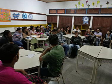 Figura 6 Grupos de estudiantes realizando la puesta en común de la actividad de los relatos en un aula del CIFMA