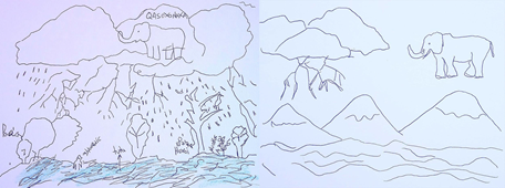 Figura 9 Dibujos de estudiantes de la escuela primaria rural y la escuela secundaria de gestión aborigen