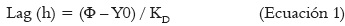 La velocidad de crecimiento diametral (KD), expresado en mm.h-1 fue calculada por la regresión lineal del diámetro del moho contra el tiempo en la fase de crecimiento, empleando el programa SigmaPlot 9,0® (Systat Software, Inc., Chicago, IL, USA). La fase de latencia (fase Lag) expresado en h, correspondió al tiempo en el que el moho logró superar el diámetro inicial del inóculo y se calculó mediante la ecuación 1 (11, 12, 14, 25).