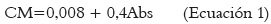 Donde CM es la concentración de Malondialdehído/ Kg de muestra y Abs es la absorbancia de la solución.