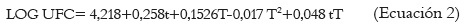 Donde t es el tiempo (min) y T es la temperatura de almacenamiento (°C).