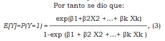La aproximación logística a la estimación generalizada de la influencia de los parámetros sobre la variable dependiente para el modelo final se expresa como: