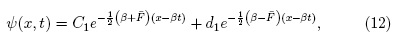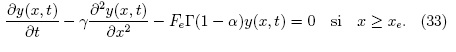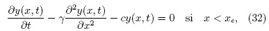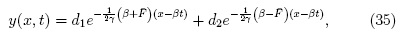 La ecuación (32) posee soluciones localizadas en x < xe cuando la constante c es nula. Para la ecuación (33), al buscar soluciones de la forma y(x, t) = y(z) con z = x - βt, la ecuación (33) requiere: