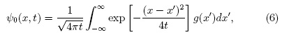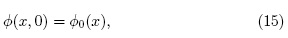 con la condición inicial ψ0(x, 0) = g(x). A partir de ψ0(x,t) se obtienen dos tipos de resultados para φ(x,t): soluciones disipativas y soluciones solitonicas. Teniendo en cuenta que la expresión (5) es una ecuación de difusión cuya solución toma la forma: