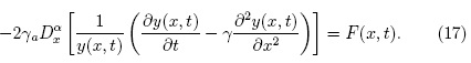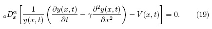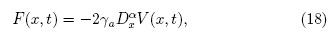 En esta sección se busca entender lo que sucede cuando el término F(x,t) que aparece en la ecuación (14) representa una barrera de potencial. Para este caso, la ecuación (22) implica que u(x,t) = FeΓ(1 - α) H(x - xe) de tal manera que la fuerza externa es de la forma F(x,t) = - 2γFe(x - xe)-αH(x - xe), siendo Fe, xe, c constantes y el potencial V(x,t) = FeΓ(1 - α) H(x - xe) - c. Por lo tanto la ecuación (20) toma la forma: