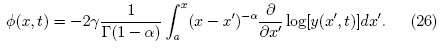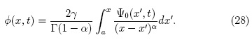 donde z = x - vt. Para continuar se utiliza la ecuación (16) que está definida en términos de la derivada de Caputo, donde 0 < α < 1 implica n = 1, como consecuencia: