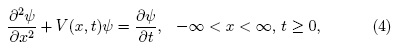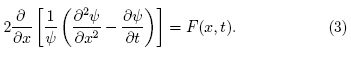 Luego se define F(x,t) en términos de un potencial V(x,t) que cumple con F(x,t) = -2. La ecuación (3) permite establecer para ψ(x, t):