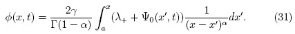 en donde φ(x, t) y φ0 (x) son funciones definidas en el conjunto de los números reales. El problema esto bien definido en la región α ≤ x < ∞ y 0 ≤ t, donde α es una constante real que define a las derivadas fraccionarias de la ecuación (14).