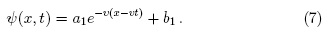 las soluciones disipativas de la ecuación de Burgers homogénea se obtienen reemplazando (6) en (2). Por otra parte, con el fin de buscar soluciones de (5) en forma de pulso que se propaga a velocidad v, se introduce el cambio de variables z = x - vt y en consecuencia ψ(x,t) = ψ(z) satisface