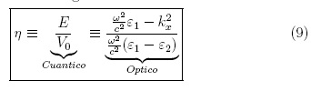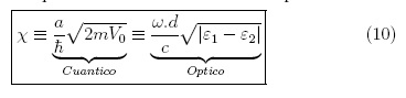 y bajo incidencia normal se tiene que θ1,2 =0, y por ende este término se anula de la anterior relación. Finalmente para encontrar el parámetro x, se despeja V0 de la ecuación (7), y se reemplaza en la definición de x para el caso cuántico encontrando la cuarta analogía: