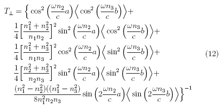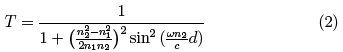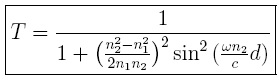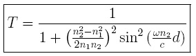 Cuando sobre una placa dieléctrica de espesor d, incide normalmente una onda electromagnética plana polarizada (TE). Los índices de refracción de los tres medios no permeables son n1, n2, n1. Ahora bien, para calcular el coeficiente de transmisión, y debido a que la onda esta polarizada de tal manera que la incidencia de los campos es normal, solamente las componentes normales a la interface establecen la continuidad de los campos. A partir de estas, se encuentra que el coeficiente de transmisión en términos de la longitud de onda (λ), esta dada por: