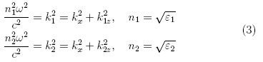 El sistema de coordenadas se fija sobre la interfase que es perpendicular al eje z, la dirección de propagación de la onda electromagnética es perpendicular al eje y, la geometría de este problema es mostrado en la figura 3, en donde, el vector de onda solo tiene dos componentes k = (kx, 0,kz).