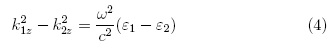 haciendo uso de la ley de Snell, se puede conocer la componente del vector de onda k1x, como