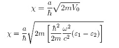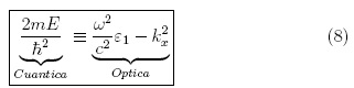 Este resultado es obtenido al comparar la ecuación de onda de Helmholtz con la ecuación de onda de Schrodinger, en donde, la discontinuidad en el potencial que presencia la partícula al propagarse de un medio a otro, es equivalente a la diferencia de permitividades que presencia la onda electromagnética al propagarse entre dos medios dieléctricos diferentes. Para establecer la relación de la energía incidente de la onda, se compara la relación de dispersión en la dirección z, para ambas regiones. Igualando las ecuaciones (3) y (5) se obtiene como resultado la segunda analogía: